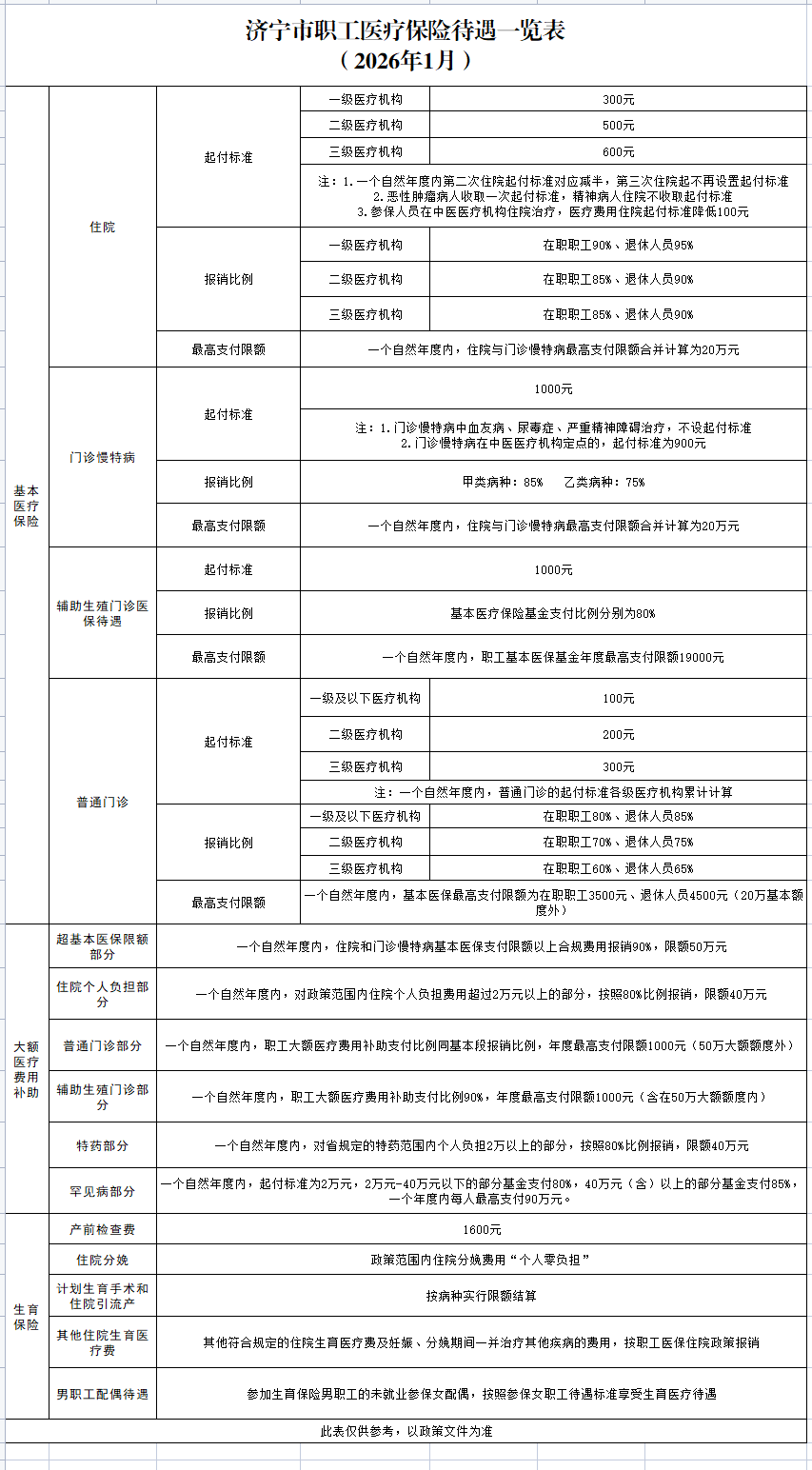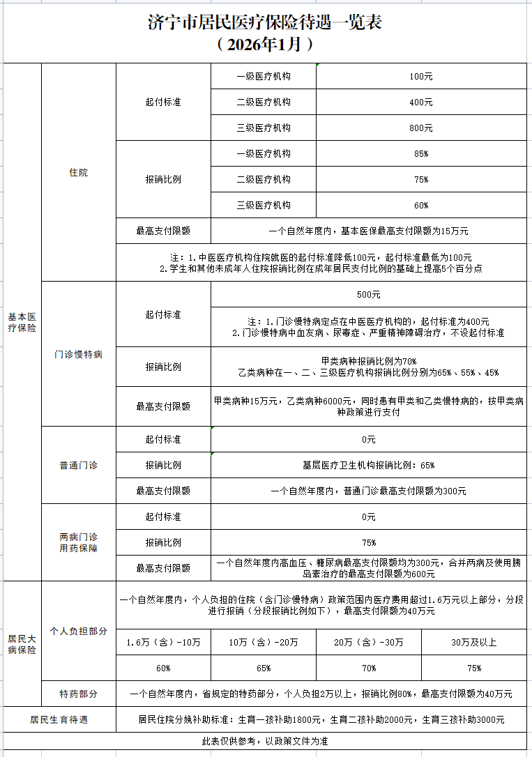 济宁市医疗保险待遇政策(更新时间2026年1月)